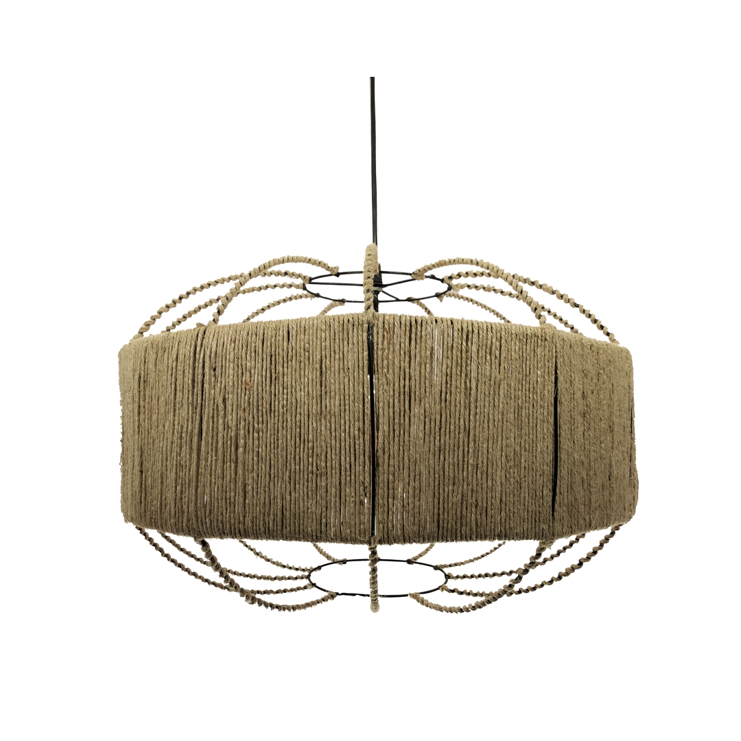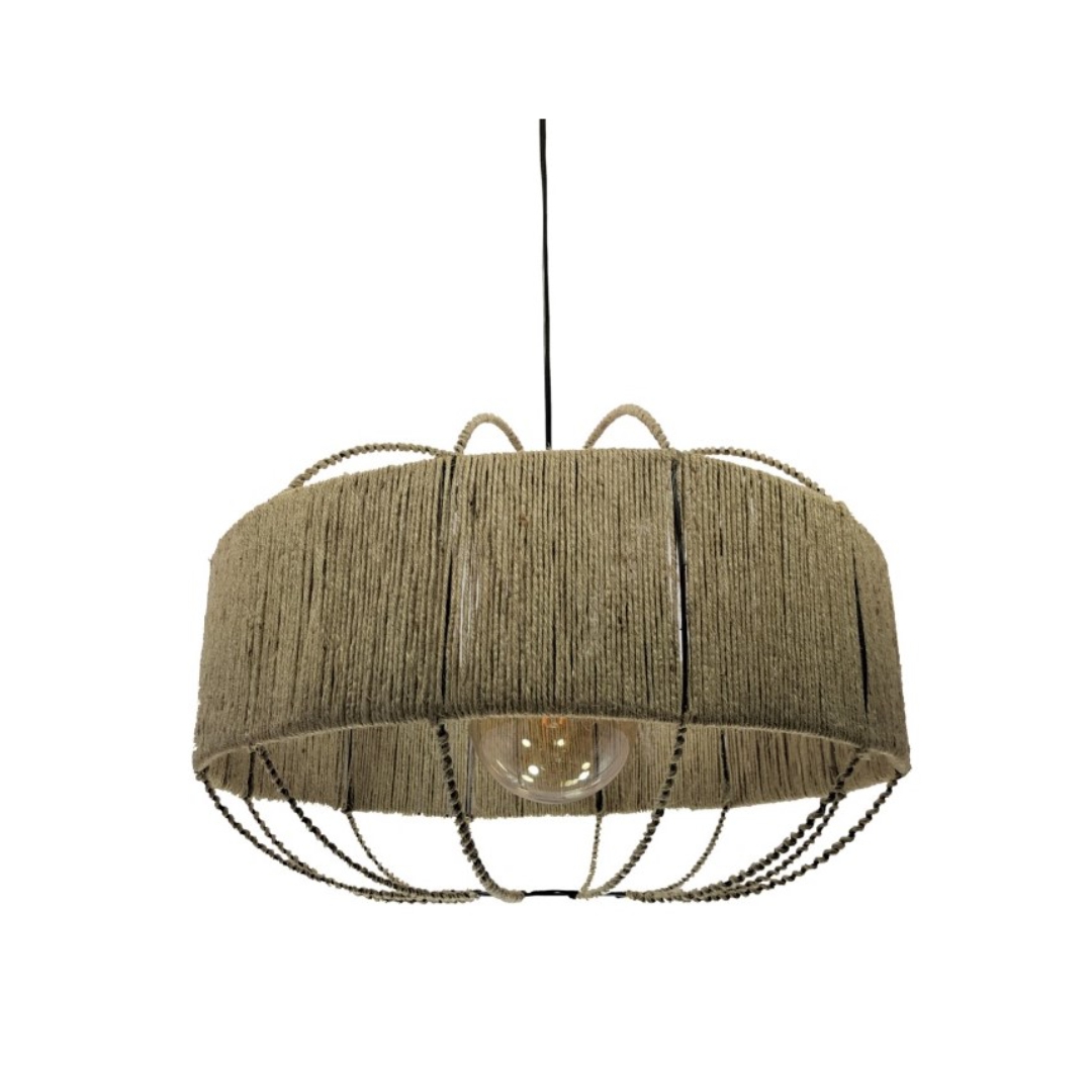 Το φως του είναι εντυπωσιακό καθώς διαχαίεται στο χώρο ενώ ταυτόχρονα το ίδιο το φωτιστικό αποκτά μια ανεπανάληπτη φλεγόμενη εικόνα καθώς το φως περνόντας μέσα από τις σχισμές της πλέξης από γιούτα δημιουργεί φωτεινές γραμμές.